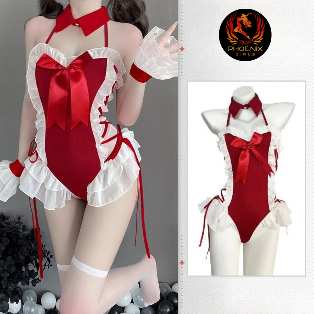 Biến hóa thành nàng hầu gái nổi bật với bộ đồ cosplay nữ hầu gái sexy đáng yêu – thiết kế pha trộn giữa sự ngây thơ và quyến rũ, mang đậm phong cách Nhật Bản nhưng phá cách với tone đỏ đen cá tính. Form váy ôm dáng vừa phải, chất liệu mềm mại, thoáng mát, kèm theo phụ kiện như tạp dề, nơ cổ hoặc băng đô giúp bạn hoàn thiện diện mạo dễ thương nhưng không kém phần gợi cảm.